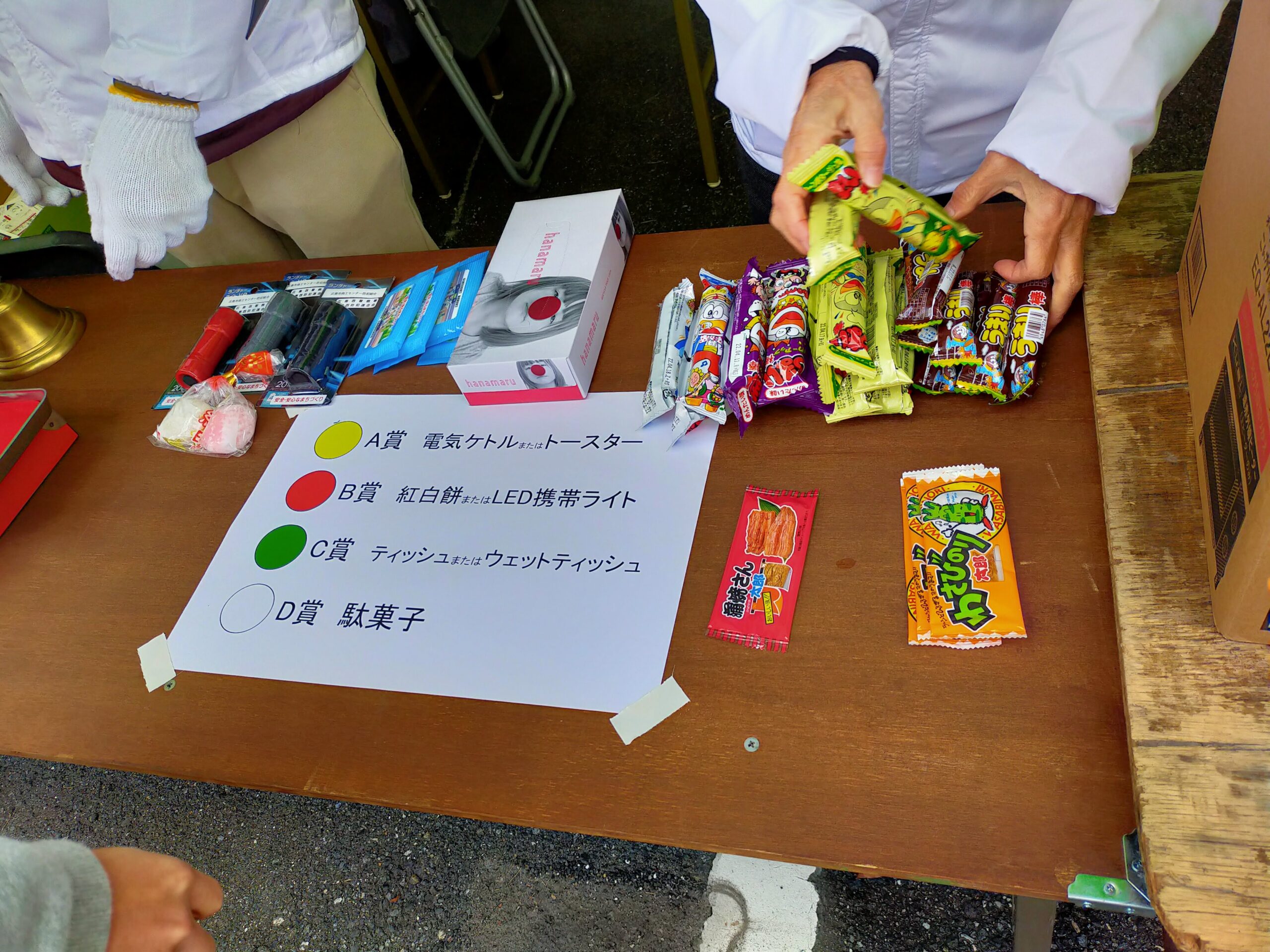 お買い物1回につき「お買い物お楽しみ券」が1枚配られ、3店舗分で1回くじがひけるガラポンくじ会場も本部に設置。
