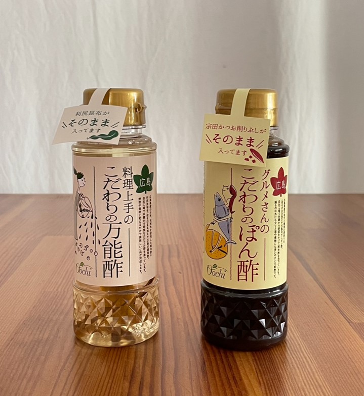 センナリ株式会社様の、地元広島にこだわった万能酢、ぽん酢のパッケージデザイン制作を担当しました。