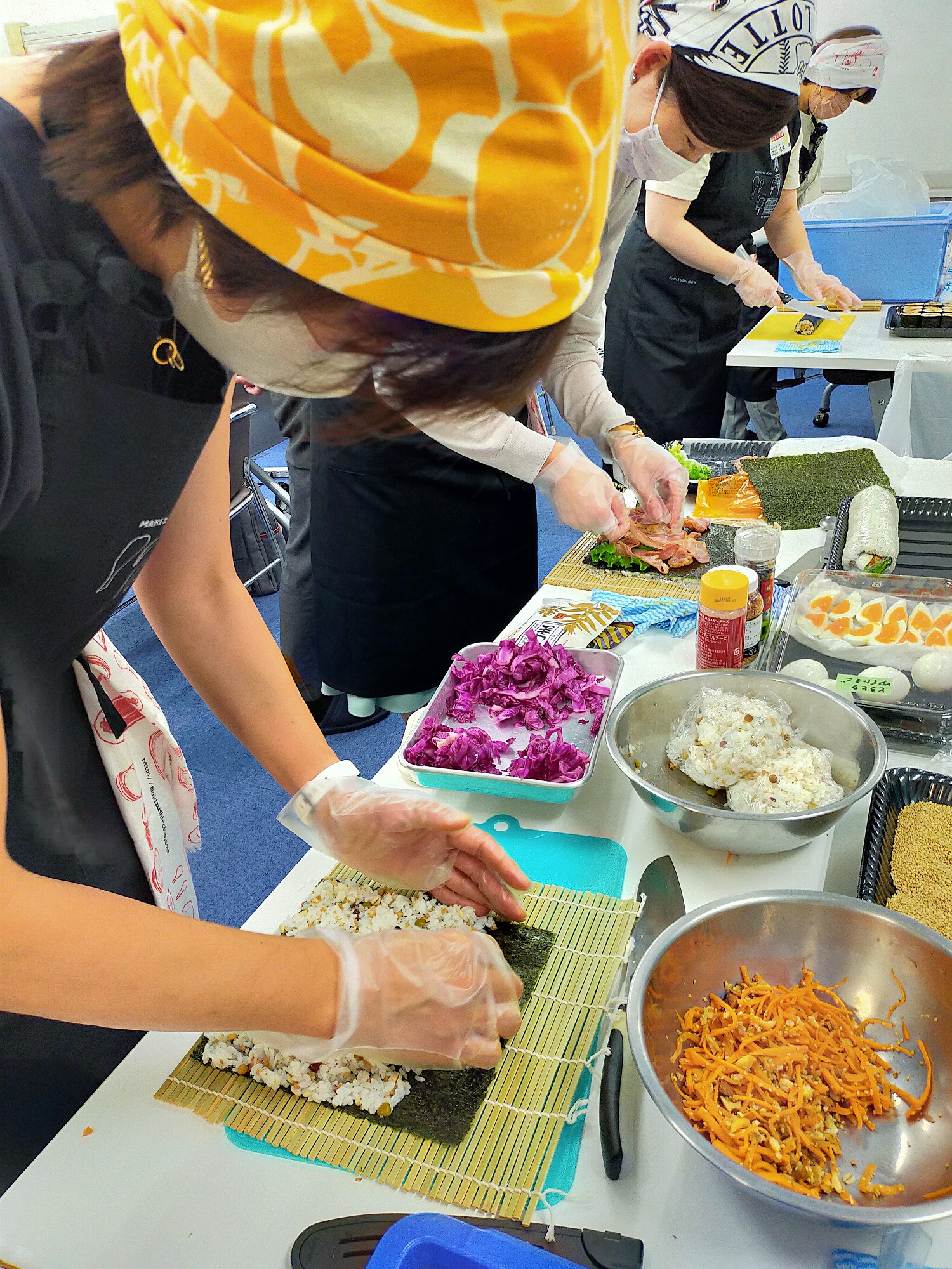 次に、巻寿司大使さんがそれぞれ事前に考えたレシピをもとに、巻寿司を巻く作業へ。