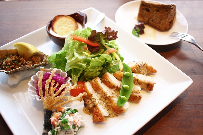 昨年からお伝えしてますが、今期より娘夫婦がHerstoryHouseに関わってくれていて。婿は今年より毎日勤務体制に切り替え厨房を手伝ってくれることに。今月のメニューは婿考案。本人が生産者のところまで見学に行ってきた『呉産牡蠣』と私がお披露目会に参加させていただいた飯南のはちみつ芋『森の絹』をメインに加え、婿特性のマスタードソースに絡まるチキンローストの3つの主菜に合わせて副菜のえのきの梅揚げ・白和えが和食の職人らしく絶品です!