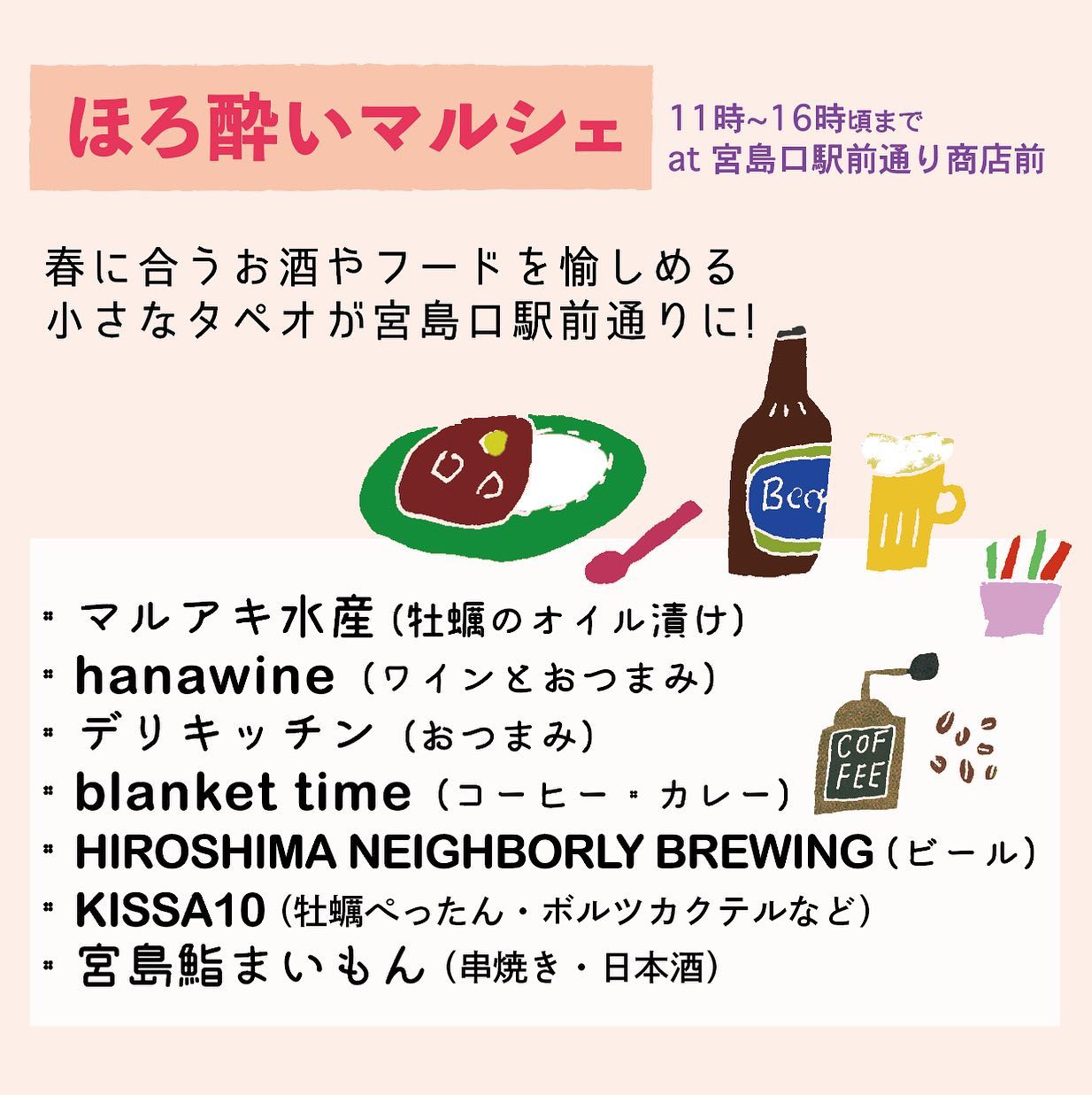 3月20日は東広島で「東広島マイスター」を一堂に集めるマルシェが開催、段取り担当として動いています。同じ日に廿日市市で女性を集めた座談会の企画進行を。そして宮島口では19日~21日まではしご酒企画と「みやじまぐちアンティーク&ほろ酔いマルシェ」が開催されます。
