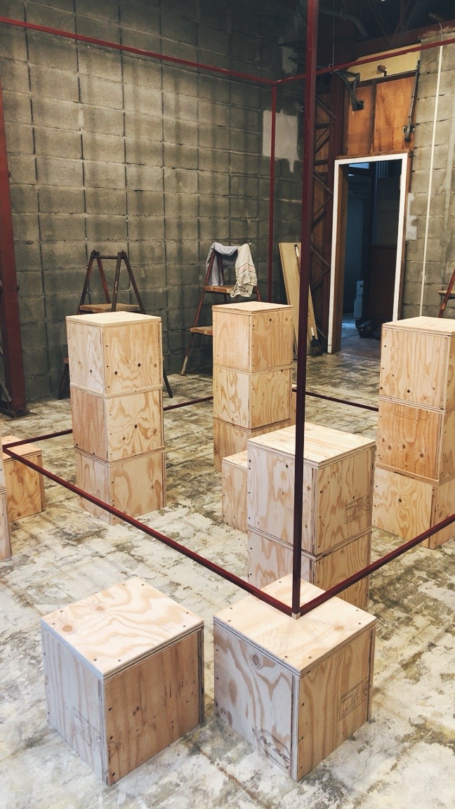 29日のお披露目ギャラリー「中村屋」では宮島口みらい協議会会長の上野社長(ちらっと写真内にいれてしまいました)自らが手作りした什器も出来上がりカッコよいギャラリーに変身中です。