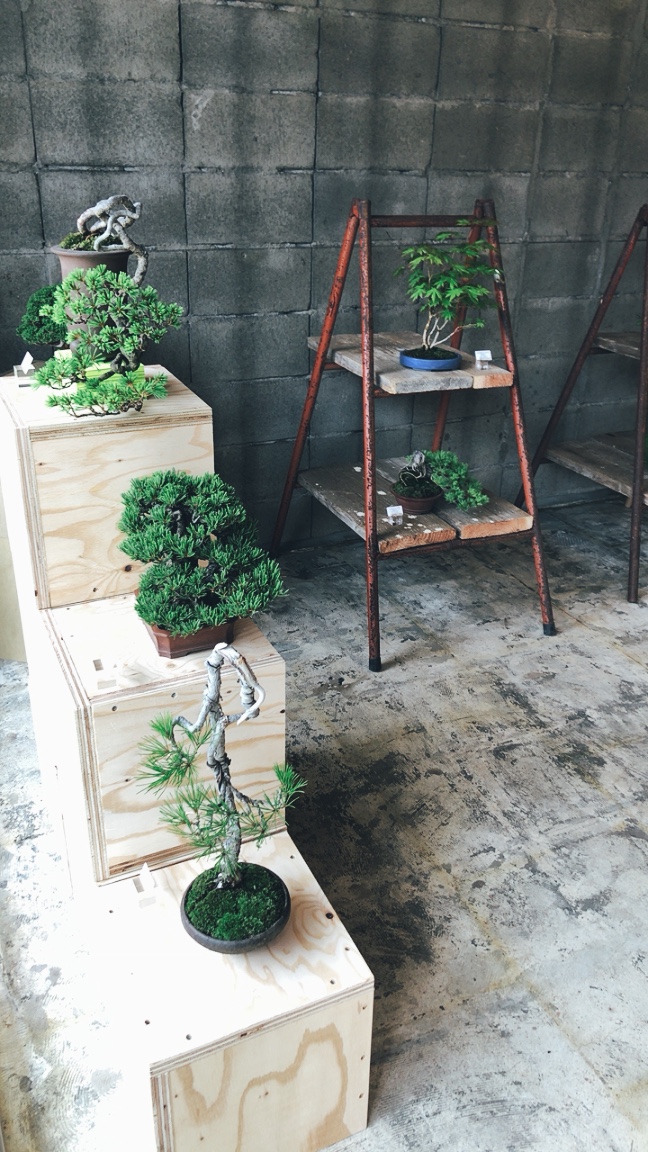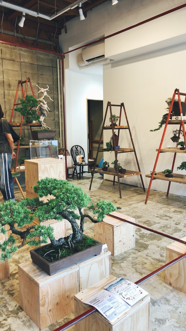 今回、初お披露目のギャラリー□Boxにお呼びした「中村屋」の盆栽展示はいい感じでした。皆さん空間とマッチしたイベントに興味津々、デザインされた盆栽の魅力を感じながらじっくり見ていただけました。