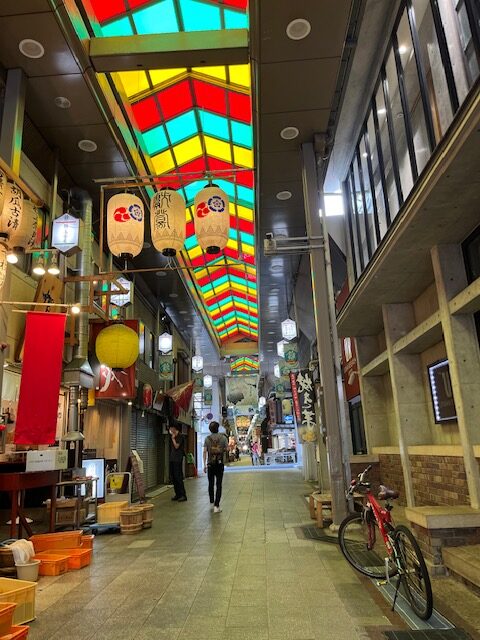 錦市場のアーケードも素敵です。祇園祭の提灯が京都らしい