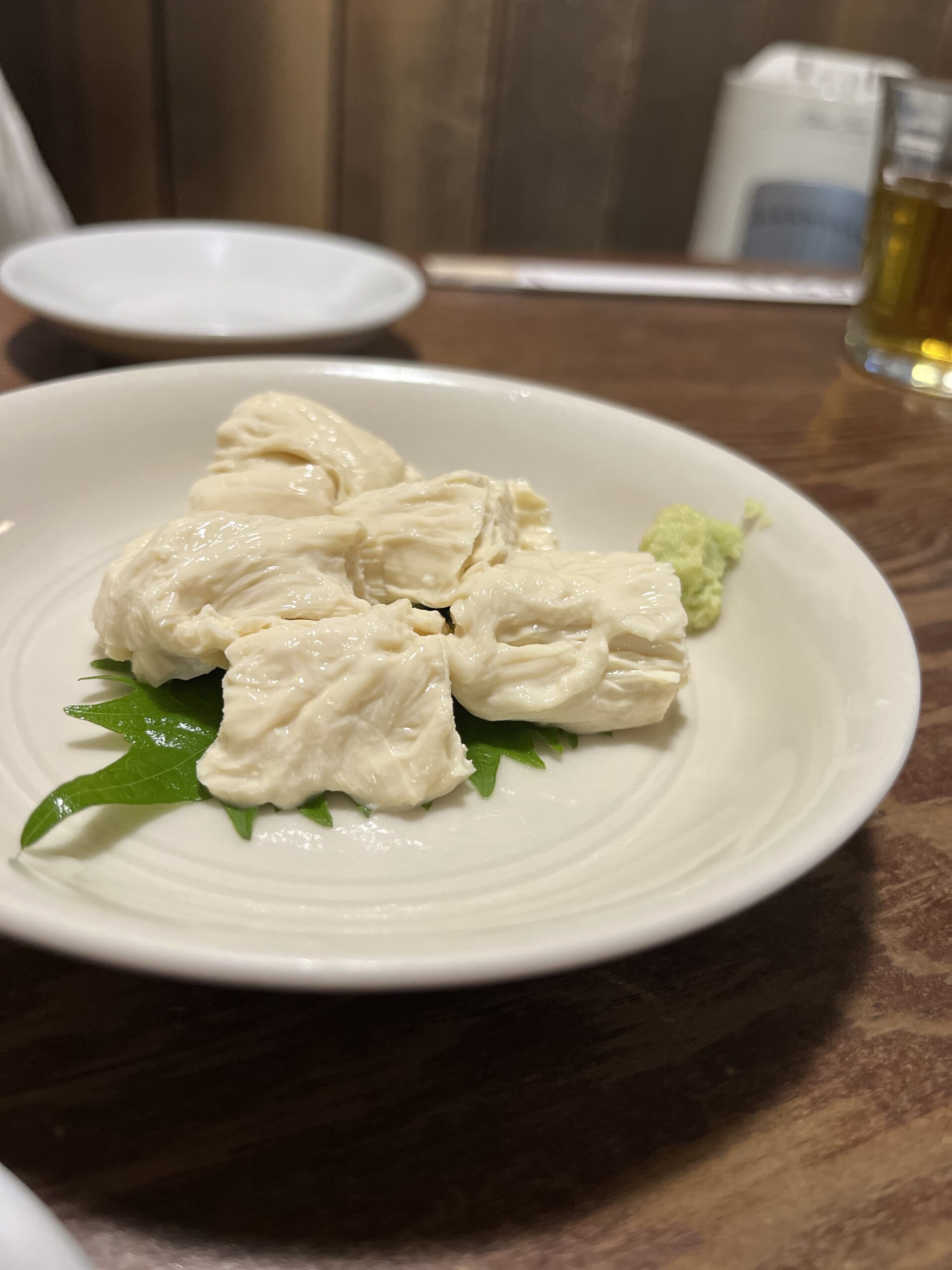 こちらは江戸時代から続くお蕎麦屋「河道屋」さんの湯葉のお刺身。優しい味でわさび醤油で頂くととても美味