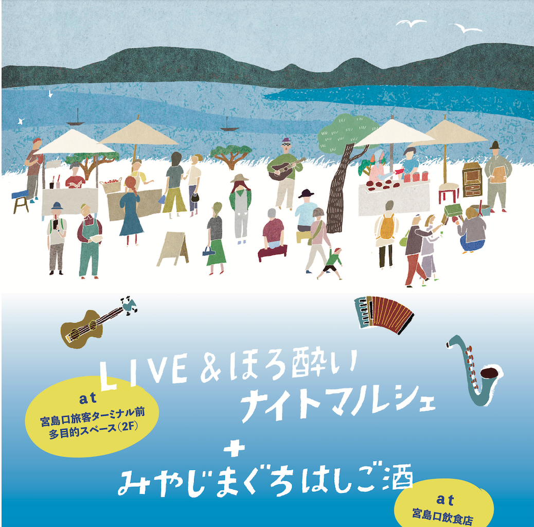 明日は宮島口で夕方からイベント「LIVE&ほろ酔いナイトマルシェ」