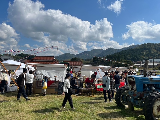 2017年から開催されているセントルマルシェ。春と秋にある東広島市県央の大きなイベントとして周知されてきました。秋開催の16日(日)は暑いくらいのお天気に恵まれ東広島や広島から車で駆けつける大勢の家族連れやペット連れで賑わってました。自然の力やトムミルクファームの牧場の大地、トラクターなどを什器へと演出したを県央らしいおしゃれさもあるマルシェは心地よくてファンも多いわけが分かります。