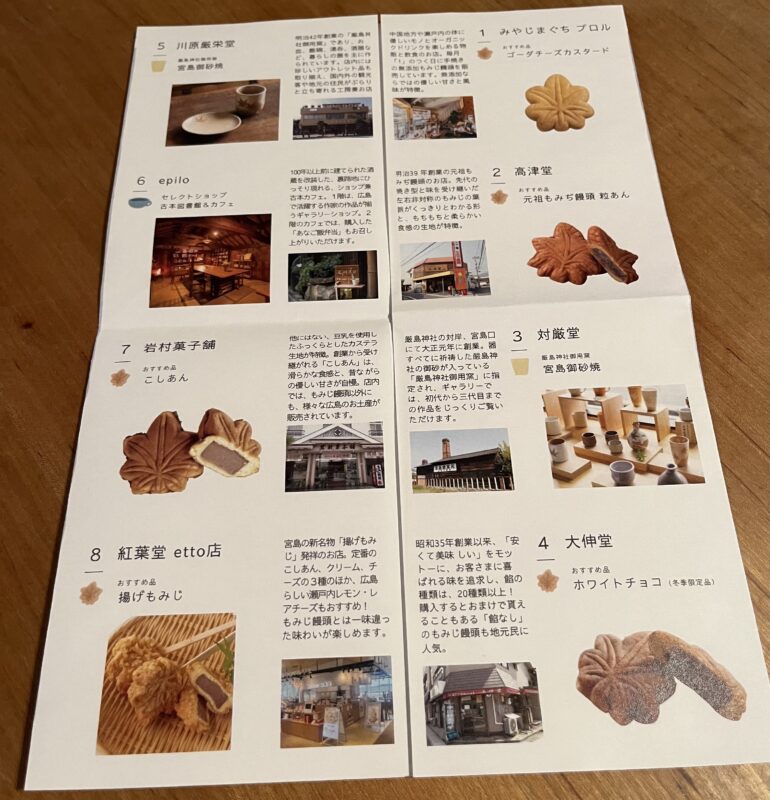もみじ饅頭5店舗とお砂焼きの工房が2工房見れる2時間のコース。
