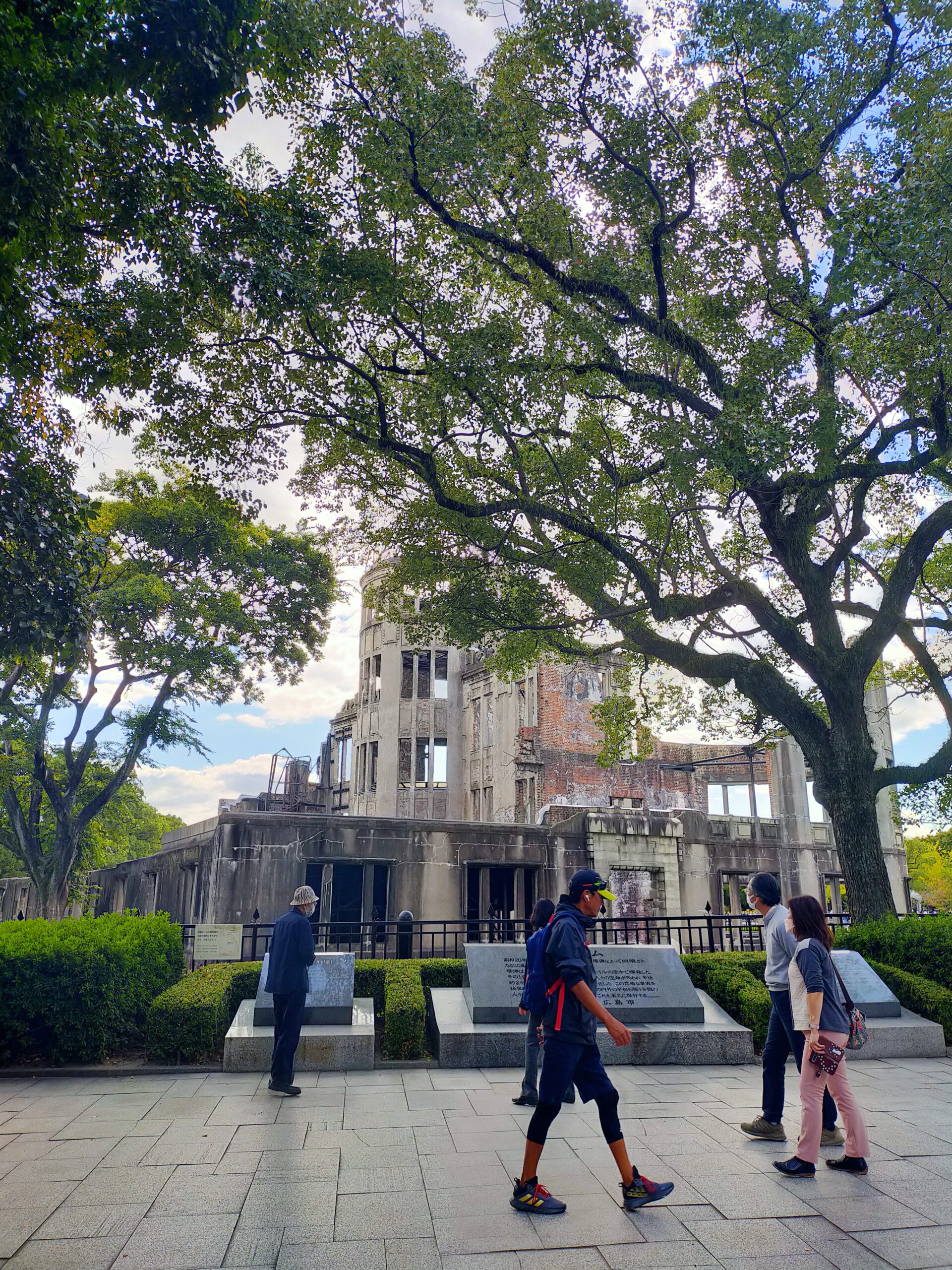 原爆ドームの前をゆきかう人たちが増えました