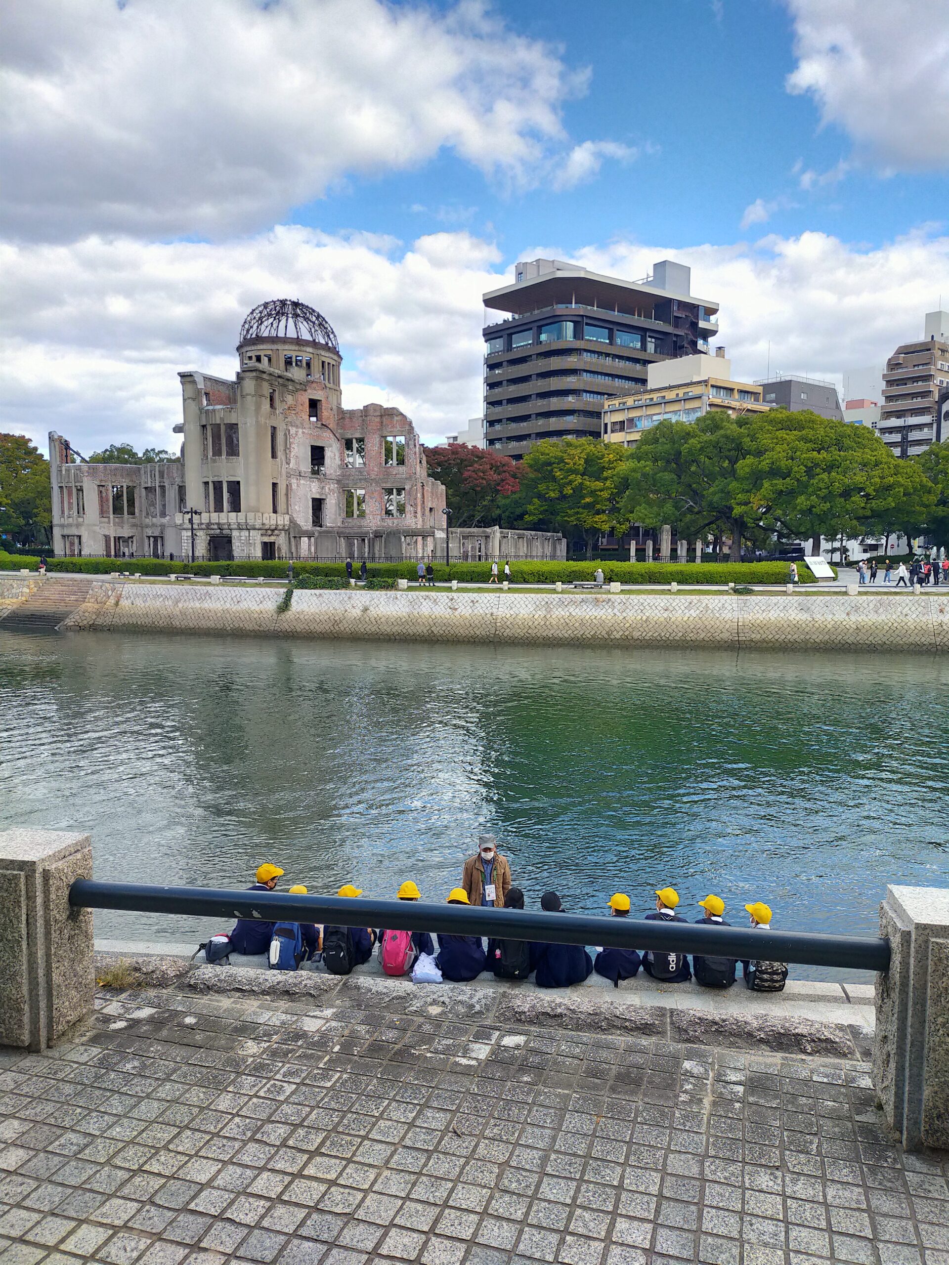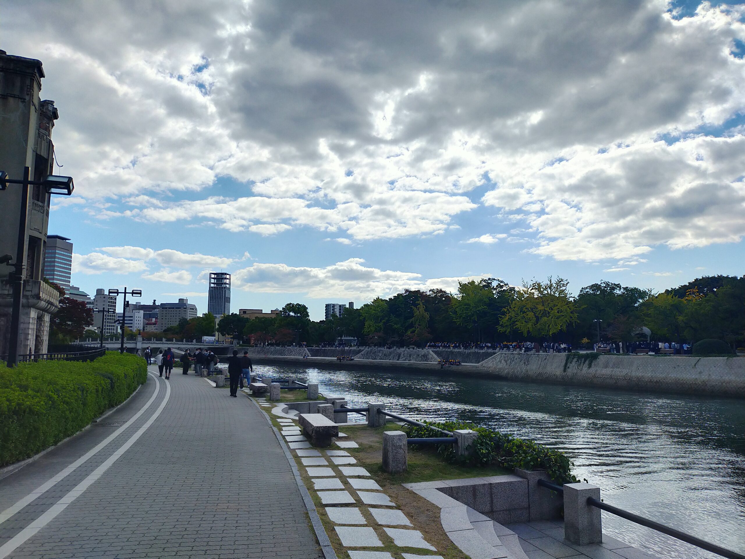 今は秋。外の方が気持ちがいい季節なので、今日は、相生橋からわたって原爆ドームをまわって、レストハウスまで歩き、戻ってきています。